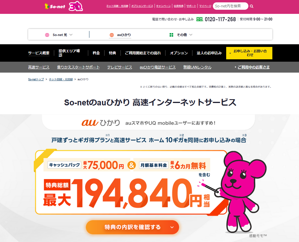 auひかりをSo-net経由で申し込む。